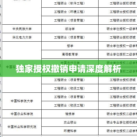 撤销独家授权是一个涉及多方面因素和程序的过程,被授权方在撤销独家授权时,需要了解相关流程和注意事项,确保操作的合法性和有效性,双方需要加强沟通,共同协商解决问题,确保合作顺利终止,通过本文的解析,希望能对读者在撤销独家授权方面提供一定的帮助和指导。